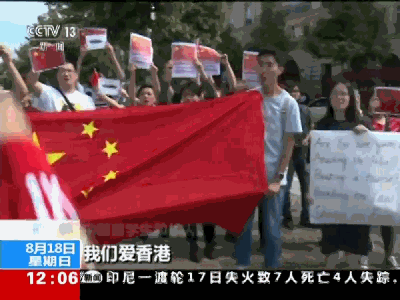 线下多国华人华侨自主举行集会,大家纷纷打出“中国,一点都不能少!”、”香港,我们一家人”、“向香港暴乱说不!”等标语。反暴力,救香港,驱废青,严正抗议任何分裂祖国的企图。